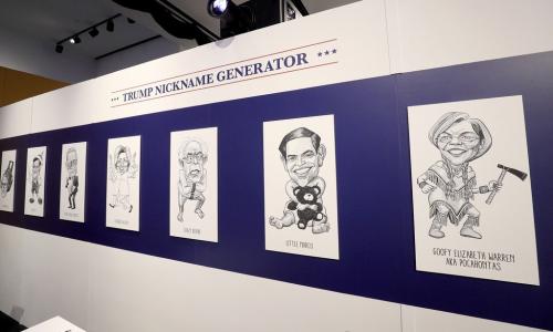 Sadaļā "Tramps pret Trampu" uz ekrāna slīd tvīti, kuros ASV prezidents nonācis pretrunā pats ar sevi. "Elektorālā kolēģija ir katastrofa demokrātijai," Tramps rakstīja 2012. gada 6. novembrī, savukārt četrus gadus vēlāk, kad, pateicoties šai sistēmai, pats guva uzvaru vēlēšanās, Trampa nostāja krasi mainījās: "Patiesībā elektorālā kolēģija ir ģeniāla, jo iesaista spēlē visus štatus, arī mazākos."