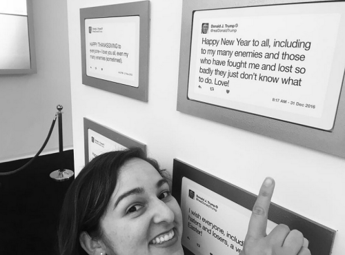 Muzejs apkopo Trampa tvītus no 2009. gada līdz šim brīdim, spilgtākajiem no tiem parādot īpašu godu, piemēram, ieraksts ar interneta sajūsmu raisījušo vārdu "covfefe" ir ierāmēts, un tam blakus novietots informatīvi paskaidrojošs plakāts. Citi tvīti sadalīti kategorijās, piemēram, vienā stūrī lasāmi ieraksti par popkultūru, savukārt citā – tvīti, kuros Tramps vēršas pret politiskajiem sāncenšiem un valsts amatpersonām.