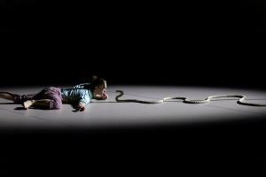 Par Lienes Gravas dejas izrādi "Pāru terapija" Hanzas peronā.