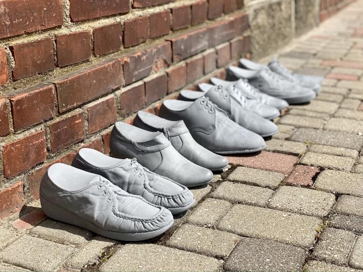 Vides mākslas darba autori mākslinieki Krista un Reinis Dzudzilo atklāj: ""viens deviņi četri viens ceļš" mērķis ir ievietot ebrejus atpakaļ tagadnē, vēsturē un Cēsu ikdienas dzīvē, ļaujot viņu piemiņai atgriezties pie savām kādreizējām mājām. Darbu veido betona skulptūras. Tās ir novietotas dažādās Cēsu pilsētas ielās, kur pirms holokausta dzīvoja ebreji. Par katras skulptūras prototipu ir kļuvis tagadnē dzīvojoša cēsnieka ziedots apavu pāris. Katra cilvēka apavu ziedošana ir solidarizēšanās ar cietušajiem. Apavi ir ne tikai zīme, kura apzīmē kāda prombūtni, jo ir tukši, bet tie vienlaicīgi liek domāt par klātbūtni, jo ierodoties mājās, noaujam savus apavus. Esi sveicināts, aizmirstais!"