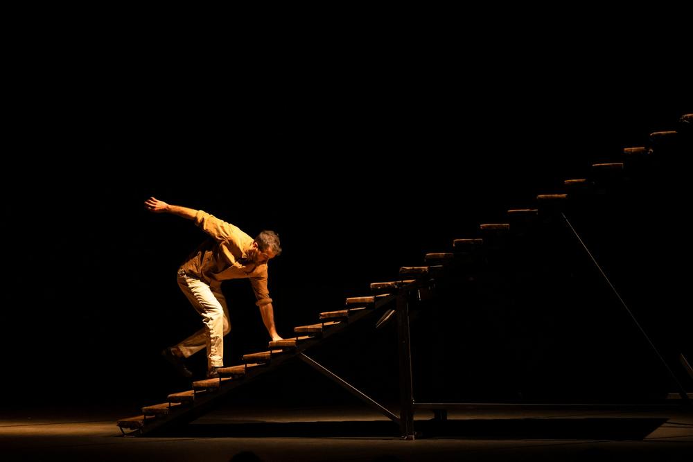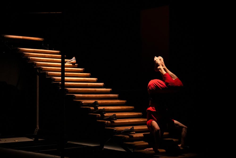 Izrāde "Ákri" šķietami ir par cirka mākslinieka ķermeni un tā robežām, par visiem tiem mirkļiem dzīvē, kad mēs atrodamies uz sliekšņa un nezinām, vai jāturpina vai jāatlaiž. Kāpnes šajā izrādē nav tikai augšup vai lejup ejoša konstrukcija – tās ir arī dzīves trajektorija, likumsakarību sistēma, kaut kas starp brīvību un neizbēgamību. Kāpnēm ir 22 pakāpieni, tie ir līdz mīkstam spīdumam nogludināti, nodiluši un reizēm pārsteidzoši cietsirdīgi. Brīžiem šķiet, ka Mureto tās pieradinājis, bet tad – divi soļi pārāk ātri, nepareizs līdzsvars, un pēkšņi dzīve atgādina, kurš šeit ir noteicējs. Es jau sen uzdodu sev jautājumu – vai kāpnes vispār iespējams uzvarēt? Kāpnes nav tikai dekorācija, tās ir problēma. Tās ir kā aizdomīgs lifts, kam būtu jāved mūs augšup, bet kam nevar pilnībā uzticēties.