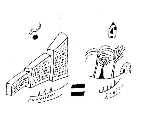 Ceļā uz veikalu Purvciemā man jāiet gar deviņstāvu māju rindu. Katrai mājai ir trīs ieejas, tām blakus – maza telpa, kurā ir atkritumu konteiners. Ejot garām, var dzirdēt, kā pa cauruli no augšas lidina pudeles un konservu bundžas. Savukārt uz ielas iemītnieki liek kaudzē nolietotus matračus, slēpes un apģērba gabalus, starp kuriem var atrast arī mazvalkātus, bet jau pirms desmit gadiem no modes izgājušus eksemplārus.