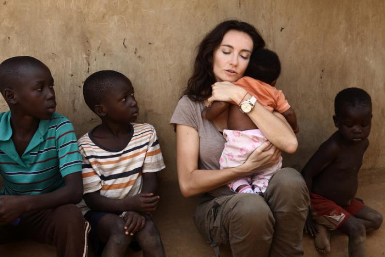 Bālā un zilacainā Dominika Kulčika (Dominika Kulczyk) noraugās no milzīga reklāmas stenda, savās rokās turot melnādainu, brūnacainu bērnu. Es esmu pārliecināta, ka tas nav viņas bērns. Ar pašas bērnu viņa nefotografētos šādā manierē, rādot to pasaulei kā trofeju. Kailu – pasniegtu kā dabas bērnu, kam vajadzīgas rūpes un palīdzība. Tieši tāpēc aiz bērna muguras uz mums labvēlīgi lūkojas Dominikas retušētā seja – saprotošā aizbildne un glābēja. Fonā, starp graustiem, var ievērot tikko samanāmus melnādainu pieaugušu vīriešu siluetus. Rodas iespaids, ka Dominika nupat izglābusi bērnu no briesmīga likteņa – palikšanas šajā degradētajā vidē.