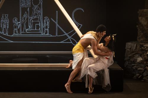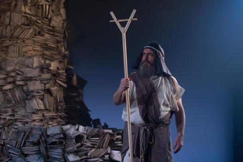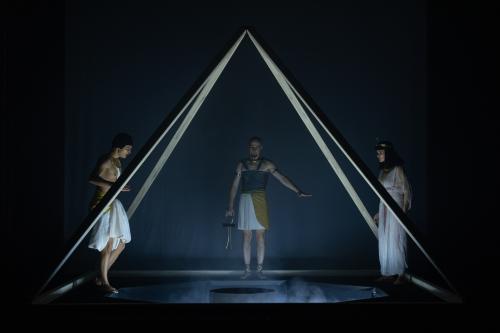Ingas Tropas-Fišeres interpretācijā Jāzeps pēc kritiena bedrē nokļūst Ēģiptē ne tikai kā citas kultūras zemē, kas viņam devusi jaunas dzīves iespēju, tomēr neļauj aizmirst iepriekš piedzīvoto. Šīs izrādes versijā Ēģipte vienlaikus ir arī nāves valstība, kurā līdz ar kritienu bedrē Jāzeps nolaidies, savukārt Asnāte (Kristīne Krūze) – gan Jāzepa sieva, gan nāves dieviete vienlaikus. Zīmīgi, ka skatuves iekārtojumā gan telpiski, gan idejiski dominē divi savstarpēji kontrastējoši un vienlaikus viens otru papildinoši objekti – klasiskam sižeta risinājumam tik nepieciešamā bedre un vizuāli suģestējošs grāmatu kalns/piramīda, kas raisa asociācijas ar pārlaicīgu, cēlas patinas klātu templi un vienlaikus iezīmē ceļu, pa kuru iespējams gan nolaisties pagātnes akā vai sava neapjaustā "es" dzīlēs, gan pacelties augšup – pretim saulei, mūžībai. No šīs grāmatu piramīdas Jāzepu un arī mūs uzrunā Kaspara Znotiņa atveidotais virspriesteris Potifers, liekot sajust dziļas, pārlaicīgas gudrības klātbūtni, taču vienlaikus izraisot pārdomas par to, cik garīgi stipram jābūt cilvēkam, lai spētu ne tikai iepazīt laika gaitā senos un ne tik senos rakstos uzkrāto cilvēces pieredzi, bet arī pašam to izdzīvot, pārbaudot savu spēju nepakļauties tik lielam kārdinājumam kā naids.