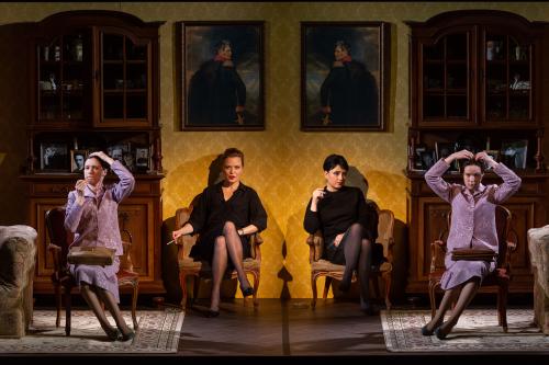 Izrādes scenogrāfs – Alvis Hermanis, kostīmu māksliniece – Kristīne Jurjāne. Lomās – Madara Rutkēviča, Agnese Rutkēviča, Sandra Kļaviņa un Elita Kļaviņa.