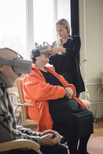 "Tikšanās ar jauniem cilvēkiem un tehnoloģijām dod jaunu pieredzi un paplašina informatīvo lauku. Liepājas Veco ļaužu dzīvojamās mājas iedzīvotāji ar nepacietību gaidīja iespēju ar jauno tehnoloģiju palīdzību "paviesoties" vietās, kuras līdz šim nav redzējuši. Vairāki seniori veselības problēmu dēļ ārpus dzīvesvietas nepārvietojas un nespēj iztēloties, kā pilsēta gadu gaitā mainījusies. Zināju, ka šī pieredze būs lielisks piedzīvojums," stāsta Veco ļaužu dzīvojamās mājas vadītāja Diana Bikova. "Taču mani absolūti pārsteidza tas, cik ļoti viņi izbaudīja virtuālās realitātes dāvātās iespējas. Reakcija bija neticami emocionāla un saviļņojoša. Un, protams, ļoti milzīgs kontrasts ir vienā brīdī sēdēt ar adīkli rokās un pēkšņi no desmit metru augstuma vērot putnus virs Liepājas ezera," viņa turpina.