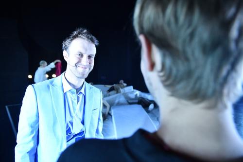 Iestudējuma centrā ir Artura Krūzkopa atveidotais dēmoniskais Paks, bet citās lomās ir Kaspars Zvīgulis, Raimonds Celms vai Jēkabs Reinis, Lolita Cauka, Liene Sebre, Uldis Dumpis, Kārlis Reijers, Indra Burkovska, Laura Siliņa, Ģirts Jakovļevs, Igors Šelegovskis, Ivars Kļavinskis, Juris Lisners, Mārcis Maņjakovs, Jānis Skanis, Juris Hiršs, Ilva Centere, Madara Bore, Uldis Siliņš, Kaspars Aniņš, Jurģis Spulenieks un Romāns Bargais.