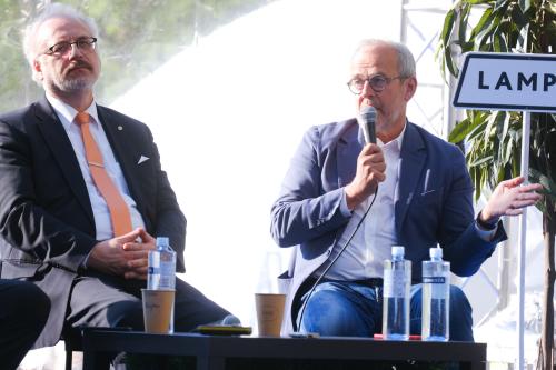 Piedaloties 10 000 cilvēkiem, piektdien Cēsu pils parkā atklāts piektais Sarunu festivāls "Lampa". Tā pirmajā dienā notikuši aptuveni divi simti pasākumu, īpašu interesi piesaistot diskusijai "Eiropas Savienība – mazāk vai vairāk?", kurā piedalījās jaunievēlētais Valsts prezidents Egils Levits un premjerministrs Krišjānis Kariņš. Pirmo reizi festivāla vēsturē diena izskanējusi ar "Politiķu disko", kur, iejūtoties DJ lomā un izdancinot visu Cēsu pils parku, saviem muzikālajiem spēkiem mērojušies Latvijas politiķi.