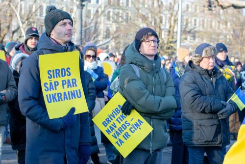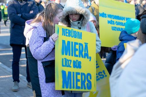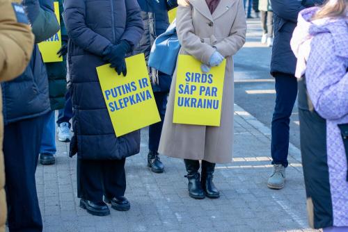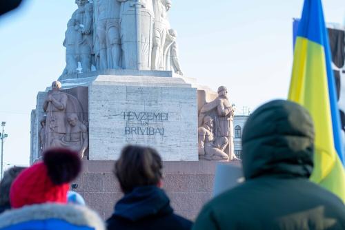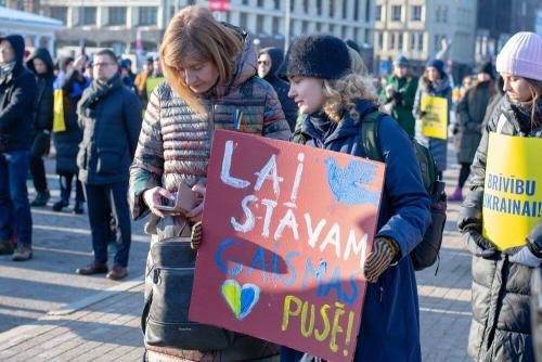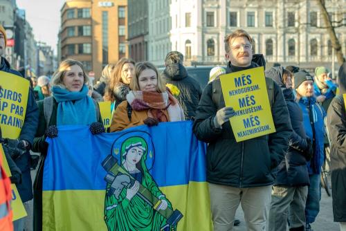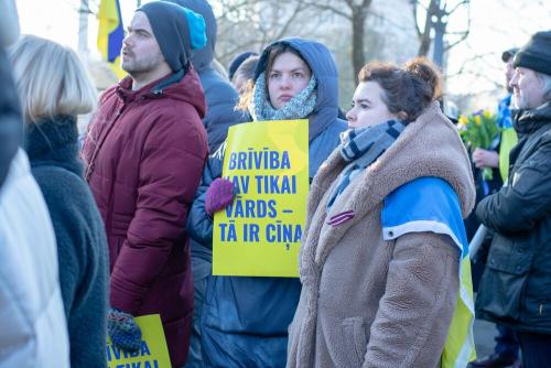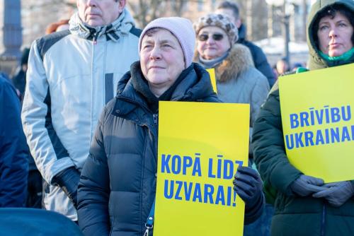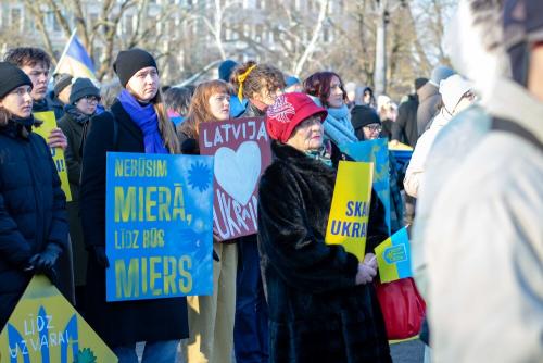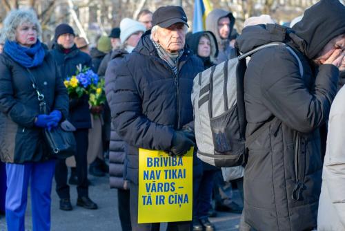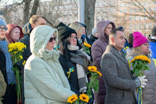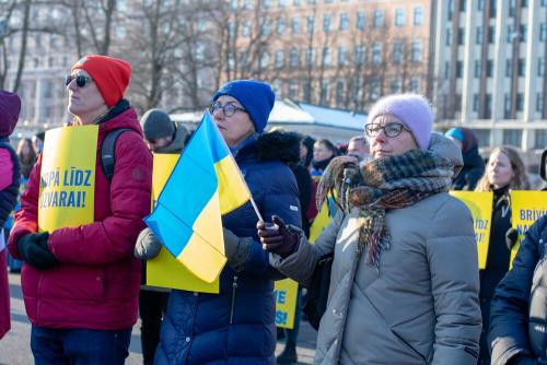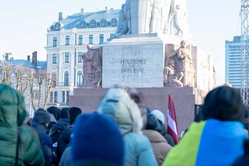 Atzīmējot trīs gadus kopš Krievijas uzsāktā pilna mēroga kara Ukrainā, vairāki simti cilvēku pulcējās pie Brīvības pieminekļa, lai atbalstītu Ukrainu cīņā par neatkarību. 24. februāra akciju "Kopā līdz uzvarai" rīkoja Latvijas pilsoniskā alianse sadarbībā ar biedrību "Eiropas kustība Latvijā".
