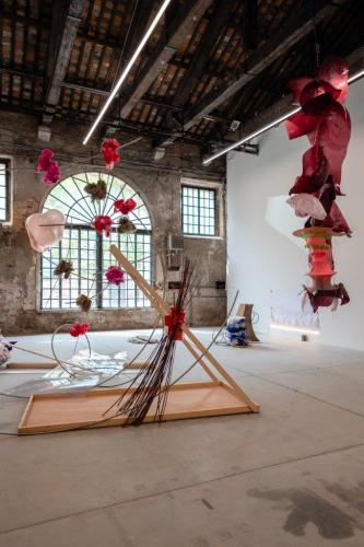 Francijā dzīvojošā Daiga Grantiņa šobrīd ir viena no starptautiski atzītākajām latviešu izcelsmes māksliniecēm un sadarbojas ar prestižām laikmetīgās mākslas institūcijām un nozīmīgiem kuratoriem. Viņas veidotā ekspozīcija Venēcijas biennālē sastāv no sintētisku un organisku materiālu instalācijas, kas, kuratoru vārdiem "mijiedarbojas ne tikai ar apkārt esošo arhitektonisko telpu, bet arī ar saviem skatītājiem un to priekšstatiem, noskaņām un iztēli". Neskaitāmie iespējamie ceļi ekspozīcijas telpā sasaucas ar daudzajām darbā ietvertajām nozīmēm, kas, smeļoties iedvesmu no mākslas, zinātnes un tehnoloģiju vēstures, runā par šodienu un jautājumiem, kas saistīti ar ekoloģijas, dzimumu un varas attiecībām.