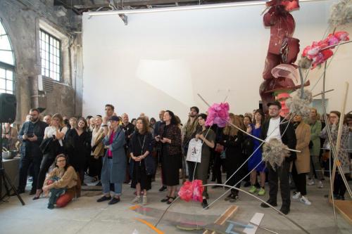 Piektdienas rītā Latvijas paviljona komanda — Daiga Grantiņa, kuratori Inga Lāce un Valentīns Klimašausks, "Kim?" Laikmetīgās mākslas centra dibinātāja Zane Čulkstēna un Latvijas Laikmetīgās mākslas centra direktore Solvita Krese — ar paviljonu iepazīstināja mediju pārstāvjus un lūgtos viesus. Izstādes atklāšanā piedalījās arī Latvijas Republikas kultūras ministre Dace Melbārde un Latvijas ārkārtējā un pilnvarotā vēstniece Itālijas Republikā Solvita Āboltiņa.