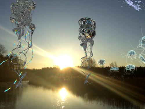 Papildinātās realitātes darbus Gints Gabrāns veido kopš 2015. gada, kā mākslas materiālu izmantojot virtuālus 3D modeļus un GPS adreses. Bieži virtuālo skulptūru pirmformas ņemtas no Ginta Gabrāna plastmasas skulptūru projekta, kurā formas radās, izkausētam materiālam līstot aukstā ūdenī. Būtisks darba posms ir atlase, kas nosaka, kuras formas attēlus mākslinieks izmanto "nākamās paaudzes" veidošanai.