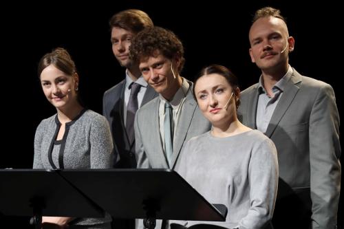Domājams, režisors šos māksliniekus izvēlējies ar nolūku, jo, lai gan izrādi nevar uzskatīt par mūziklu, tomēr tā noteikti ir muzikāla izrāde. Komponiste Linda Leimane iestudējumā parūpējusies gan par nostrādātiem numuriem, kāds ir ģeniālais balsošanas maratons repa estētikā, gan arī veidojusi ritmiski muzikālu naratīvu ainās, kur aktieri šķietami tikai runā tekstu – atsevišķi pa vienam vai brīžiem baisā unisonā. Muzikālā ievirze saskan arī ar minimālistisko Ievas Kauliņas veidoto skatuves iekārtojumu, kur politiķu runas tribīnes aizvietotas ar nošu statīviem. Tā izrādes veidotāji dod mājienu, ka mēs te skatāmies tādu kā priekšnesumu, ko brīžiem varētu nosaukt par farsu. Tieši ritmiskums un dažādās skaņas spēles piešķir izrādei īpašu dinamiku, kā arī palīdz noturēt interesi, jo pretējā gadījumā mēs vienkārši klausītos tekstus, ko tikpat labi varētu dzirdēt arī attiecīgās sēdes stenogrammā. Un nekādu īpašu vēstījumu no autentiskā materiāla jau mēs nesaklausītu. Visticamāk, paliktu garlaicīgi.