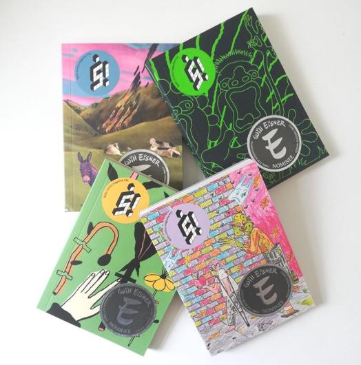 Nominētās antoloģijas – nr. 34 "Redrawing Stories from the Past", nr. 35 "Bonkers", nr. 36 "Plant Power" un nr. 37 "Down Down Under" ir sērijas "š!" izdevumi, kuros četras reizes gadā tiek apkopoti latviešu un starptautisku komiksu mākslinieku darbi jau kopš 2008. gada. Katrā krājumā par vienu noteiktu tēmu tiek publicēti gan latviešu, gan ārzemju autoru komiksi, kuri tiek īpaši radīti un izvēlēti katram izdevumam. ""š!" krājumi starptautisku uzmanību komiksu vidē ieguvuši, jo izceļas ar eksperimentāliem darbiem un mākslinieku drosmi meklēt jaunus un neparastus veidus komiksu veidošanā, laužot stereotipus paplašinot un komiksu tradīciju," teikts paziņojumā presei.
