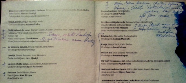 Un ārzemju latvieši jau ierunājās, ka tik tālu braukuši, izbrīvējuši laiku, ka vajadzētu sarīkot kādas kopīgas sanāksmes. Zinu tikai, ka uzveduma "Eslingena" brīvprātīgā trupa sanāca uz mēģinājumu svētdienas rītā – ja reiz visi ir Rīgā un labā formā, labi iedziedājušies. Malači!
