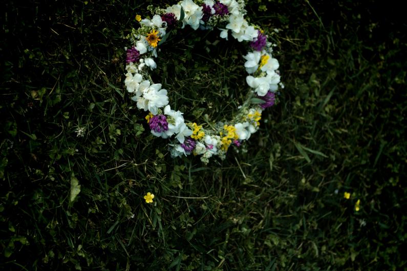 Ielīgošana bija paredzēta brīvdabā, bet debesis nomācās, no tām nokrita pāris ļaunu vēstošas lāses, un Svētuļu vadība drošības pēc nolēma pasākumu pārcelt uz iekštelpām. Kultūras nama zālē gar vienu sienu nolika garu galdu ar krēsliem, pie tā varēja sēsties visi, kas gribēja, un likt virsū visu, ko gribēja, bet pati vadība spietoja priekštelpā ap bezmaksas siera platēm un zālē nemaz nerādījās, tikai garāmejot iemeta pa piesardzīgam skatienam plaši atvāztajās durvīs, cauri meijām un krāsaino gaismiņu ņirbai cenšoties kaut ko saskatīt. Ievelc vēderu, līdz vienai manai ausij atlidoja šņāciens, tur kāda mākslinieciski tērpta līgotāja fotografēja kavalieri. Man šajā ciemā vēl ir jādzīvo, cits šņāciens atlidoja arī līdz otrai.