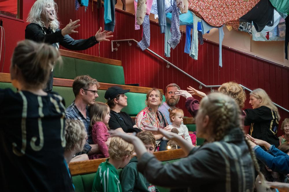 Santa: Arī kopienas teātri maina savas lomas un pārsteidz mūs. Bet es gribu uzdot pēdējo jautājumu par iespaidīgo scenogrāfiju, ko jūs vedat līdzi ar lielajām kastēm. Ko simbolizē visi tie krekli?