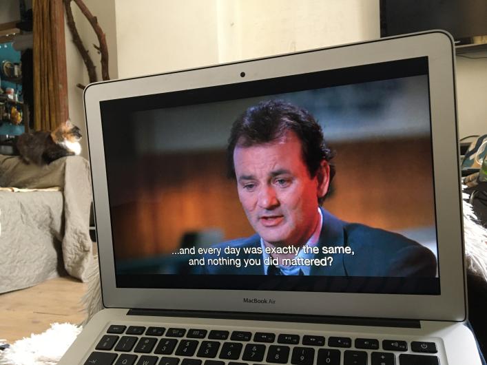 Iespējams, šīgada 2. februāris ir unikāla diena, kad pirmo vai kārtējo reizi noskatīties "Murkšķa dienu", – var gadīties, ka šobrīd tā rezonēs pavisam citos reģistros nekā citās skatīšanās reizēs. Aizvadītais gads daudzu acīs ir bijis īsts Murkšķa gads, kurā laiks nav ritējis uz priekšu, katra diena atgādinājusi iepriekšējo un nākotne ir atcelta. Karantīnas apstākļi, kuros dzīvojam jau turpat gadu, mūs ne vien attālinājuši vienu no otra sociālā un fiziskā ziņā, bet arī mainījuši mūsu attiecības ar laiku.