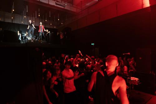 Neierasti, bet banāli, gandrīz kā iņ un jan, vienādās daļās sadalījusies krievvalodīgo un latviski runājošo publika koncertā saplūda vienkopus, liekot man justies kā pulsējošam punktam, kā monētai ar divām pusēm, jo pirmo reizi spēju vienlaikus asociēt savu piederību abām divām reizē. Iespējams gan, ka pirmajiem daudz tiešāk bija nolasāmi daži ironiski vai pseidopolitiski gājieni, kā, piemēram, klišejiskās popmūzikas grupas "Руки Вверх" dziesmas "Дома не сиди" kaverversija, kuru deviņdesmitajos pat negribēdams ikviens jaunietis skandināja savā pagalmā. Kāds iekarsis vidēja vecuma klausītājs pirmajās rindās nepagura izkliegt grupas solistam Nikolajam sejā savas bailes un sajūsmu par to, ka grupa nemaz neapzinās, cik lielu misiju viņi uzņēmušies un kādu atbildību viņi nes, ņemot vērā politisko situāciju pasaulē un Krievijas lomu tajā. Tomēr grupa, lai arī neapšaubāmi pieskaras politiskām netaisnībām, izvēlas palikt mākslas un kultūras laukā, savus komentārus par notiekošo izsakot mūzikā, atbildību par interpretāciju ar vienlīdzīgi sadalītu spiedienu atstājot arī uz klausītāja pleciem. Saskarsmei un mijiedarbībai galu galā ir primāra nozīme.