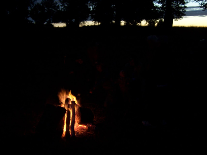 Kad sāk nākt miegs un draugu kompānija pagurusi, laiks līdz saullēktam velkas gausi. Pagales ugunskuram beigušās, tas sāk palēni izplēnēt. Lai atgrieztu mundrumu, jāpakustas. Miegaini, jakās un segās satinušies, mēs klunkurējam apkārt pa piemājas celiņiem. Viegla dūmaka savālojusies līdz pat mežmalai. Viss ir gluži kā bez skaņas. Tāds rēns un neierasts. Šur tur tālienē gaisā vāri trīsuļo padzisušo ugunskuru dūmi. No dīķiem lēni kāpj migla, un mūsu sagurušās balsis liekas neiederīgas Jāņu nakts klusumā.