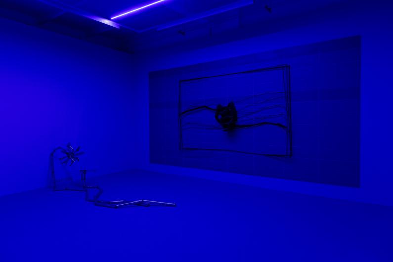 Iegrimstot izstādes baseinā, man atveras paranoiskas trauksmes caurvīta pasaule, kurā tik tiešām parādās kuratores pieminētā analogā kibertelpa – no metāla sametināts piemineklis virtuālu sasniegumu, virtuālas naudas un virtuālas atzinības izmisīgo meklējumu plūsmai, haosam, pārstimulācijai, reibumam, jēgas un realitātes izšķīšanai traģiskā fragmentācijā un bezgalībā. Konflikti caurvij ne tikai Ģelža darbu materialitāti un simboliku – apgūstot izstādes valodu, es pakāpeniski sāku nolasīt arī pārdzīvojumus, kas notiek mākslinieka prātā un darbnīcā un kuru rezultātā tapušie darbi meklē atgriešanos pie jēgas, viengabalainības, klātesamības un drošības, taču, spoguļojot pasaules absurdu un spriedzi, piedzimst deformēti skumji un traģiski, gluži kā čīkstoši motorizētās tērauda puķīšu ziedlapas. Šādā skatījumā izstāde iedarbojas ļoti spēcīgi – gan emocionālā, gan intelektuālā ziņā.