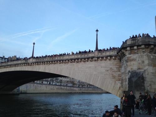 Sēnas krastos pulcējušies vairāki tūkstoši cilvēku, ziņo mediji. Liesmas plosa ēku jau vairākas stundas, un tās joprojām nav nodzēstas.