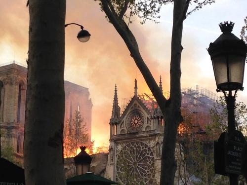 Uz notikumu vietu devies arī Francijas prezidents Emanuels Makrons, kurš, uzrunājot francūžus, uzsvēra, ka šajā brīdī ir kopā "ar visiem katoļiem un Francijas tautu", un atzina: "Kā visi mani tautieši, esmu skumju pārņemts, redzot, kā daļa no mums deg."