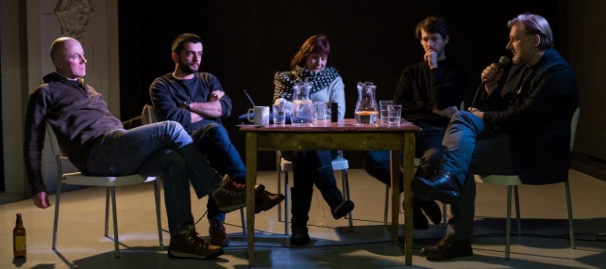 Diskusija "Pilsēta kā filmas varonis" piesaka kinolektoriju "Tas, ko nedrīkst nezināt XII: Urbānās kino leģendas", ko rīko Rīgas Kino muzejs un kinoteātris "Splendid Palace". Sarunā Kaņepes Kultūras centrā piedalījās kinorežisors, kinopētnieks un skatītājs Jānis Putniņš, kino un operas režisors Aiks Karapetjans, kinopētniece Daira Āboliņa, kā arī antropologs un pilsētu pētnieks Viesturs Celmiņš. Diskusiju vadīja Ilmārs Šlāpins, foto – Kārlis Bergs.