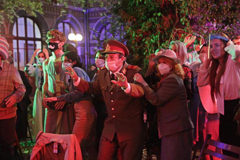 Žude izvēlējās neapturēt filmas uzņemšanu, bet gan pielāgoties jaunajiem apstākļiem – tostarp mēģinājumus ar aktieriem pārcelt uz virtuālām platformām, kā arī filmēt, strikti ievērojot noteikumus. Intervijās viņš atbruņojoši skaidro, ka neuzskata nevienu filmu par tik būtisku, lai kāds cilvēks tās dēļ saķertu iesnas, kur nu vēl vīrusu. Arī Covid-19 dēļ atceltais fiziskais festivāls Berlināles regulāro viesi tikai iepriecina, jo var iztikt bez "sarkanā paklāja klaunādes". Un var manīt, ka režisors ir izklaidējies, atrodot varoņu raksturiem piemērotākās vai – gluži otrādi – absurdi neiederīgākās sejas maskas. Taču, lai arī cik ļoti maska iederētos kā metafora šajā stāstā, neparedzēts pavērsiens ir kāds izplatītāju secinājums. Proti, filmas, kur varoņi lielākoties redzami maskās, ir ārkārtīgi viegli pielāgot to valstu tirgiem, kur skatītāji aizvien priekšroku dod dublāžai, nevis subtitriem, jo nav redzamas mutes un līdz ar to arī sinhronitātes trūkums vairs nav problēma. Protams, Žude nav pārāk iepriecināts par to, ka radījis "ideāli dublējamu filmu".