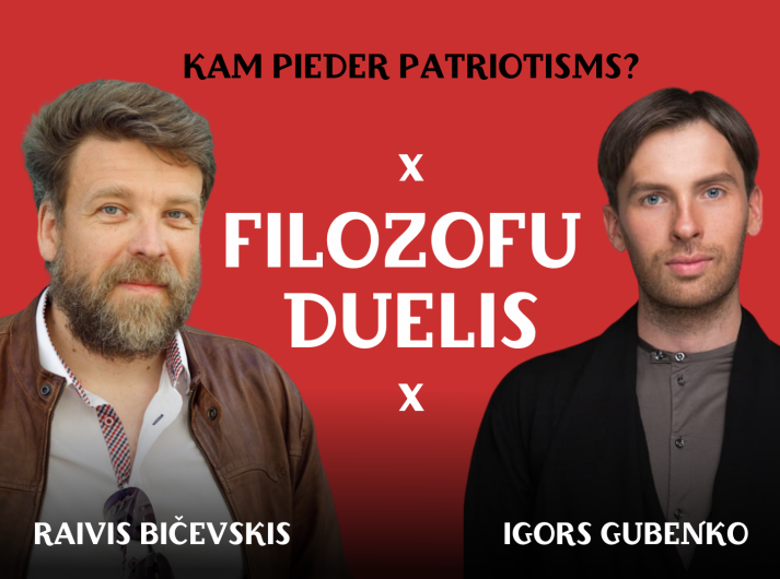 Filozofu Igora Gubenko un Raivja Bičevska intelektuālā cīniņa centrā bija āķīgi un neviennozīmīgi jautājumi par patriotismu: Vai patriotisms var būt laikmetīgs? Kā un vai patriotismu mācīt skolā? Vai patriotismam jāsakņojas vēsturē? Galu galā – kam pieder patriotisms: konservatīvajiem vai liberālajiem?