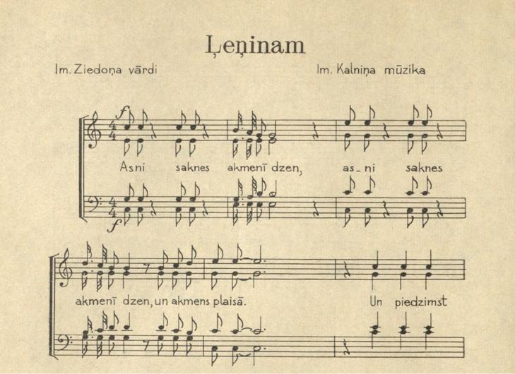 "Ko darīt, ja viens liktenīgs vārds dziesmai aizšķērso ceļu uz nākotni?" savulaik jautāja kultūras žurnāliste, muzikoloģe Inese Lūsiņa [1]. Tāpat kā vairāki citi, viņa šo jautājumu uzdeva par Imanta Kalniņa un Imanta Ziedoņa kordziesmu "Ļeņinam", kura, lai arī uzskatīta par izcilu mākslas darbu un dažkārt saukta pat par šedevru, pēc Latvijas neatkarības atjaunošanas pašsaprotamā kārtā vairs nav tikusi iekļauta Vispārējo latviešu Dziesmu svētku repertuārā. Šīs dziesmas stāsts ir paradoksāls – viens vienīgs oriģinālajam tekstam klāt pielikts vārds, kas savulaik tai atvēra ceļu uz Dziesmu svētkiem, mainoties sociālpolitiskajam kontekstam, bija arī tas, kas šo ceļu aizvēra.