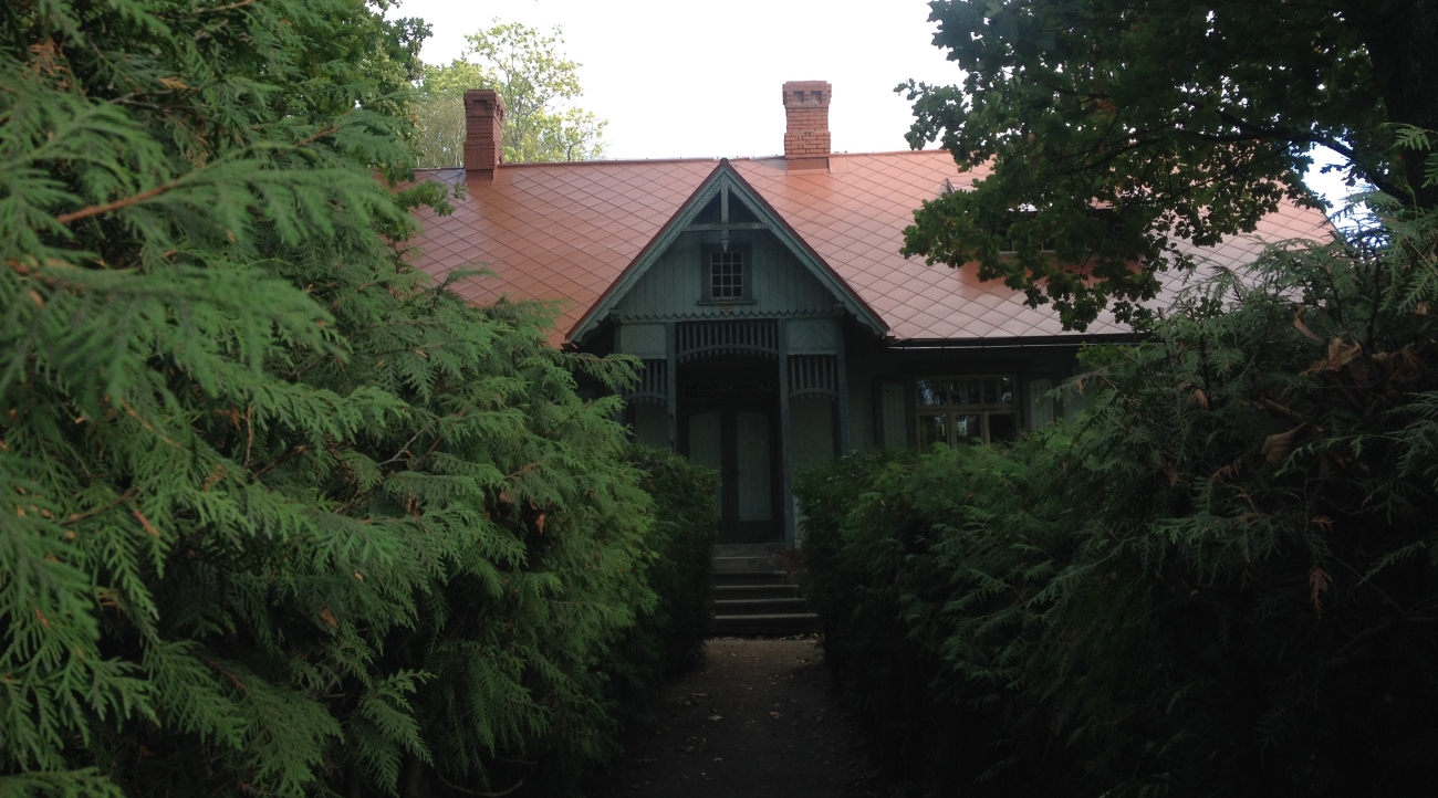 Pirms ejam prom, vēl ielūkojamies nelielajās muzeja administratīvajās telpās jeb kalpu galā, vietā, kur kādreiz atradās podiņu plīts, bet tagad tiek ceptas atskaites un darba plāni, kā arī pieliekamajā un apskatām durvis, kuras vairs netiek vērtas.