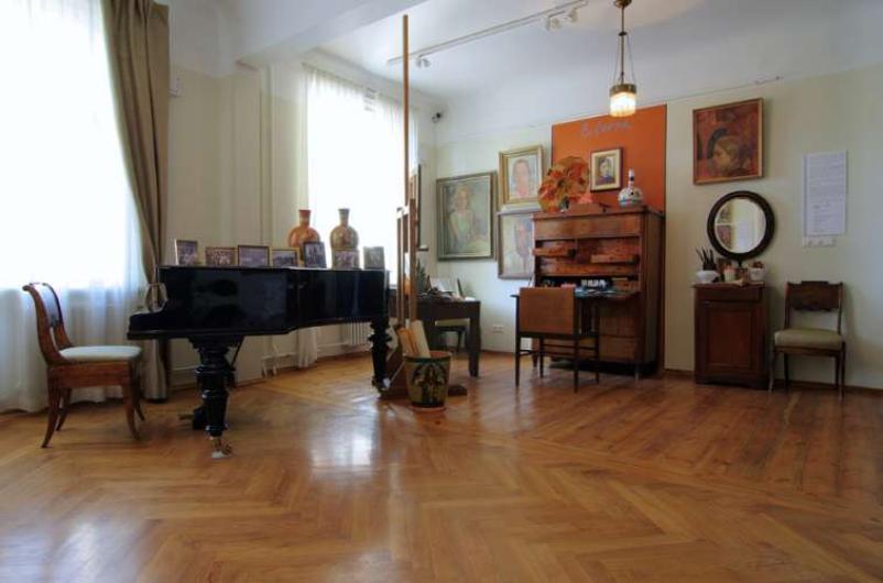 Tikai nedaudz atrāvušies no darbiem, atceramies, ka esam muzejā – dzīvoklī. Pavērts skapis, spoguļgalds, krēsli, darba galdi, molberti, ap kuriem izkārtotas ogles, zīmuļi, krīti, otas un citi darba instrumenti, liecina par dzīvi, kas norisinājusies daudzveidīgo darbu tapšanas gaitā. Telpā, kur atrodamies, apvienotas divas istabas – Aleksandras Beļcovas guļamistaba un viesistaba, kas bijusi arī Beļcovas darbnīca. Šajā muzeja telpā atklāta Sutas un Beļcovas sabiedriskā dzīve un mākslinieciskā radniecība – var redzēt un izlasīt par abu darbību mākslinieku grupās un citās organizācijās, skatīties uz melnā flīģeļa izkārtotās fotogrāfijas, kas liecina par aktīvu dzīvi sabiedrībā. Arī tagad te regulāri notiek lekcijas, piemēram, mūsu apmeklējuma dienā pirms došanās prom redzam, kā tiek izlikti krēsli lekcijai par japāņu izcelsmes mākslinieku Cuguharu Fudžitu, kura daiļrade divdesmito gadu otrajā pusē ietekmējusi Aleksandras Beļcovas glezniecības manieri. Jāatzīst, ka par šo mākslinieku uzzinājām, gatavojoties savam apmeklējumam, lai gan divdesmitajos gados Fudžita bijis ārkārtīgi populārs Parīzes mākslas dzīvē, sitot pušu pat Pikaso slavu. Aleksandras Beļcovas mākslinieciskajā attīstībā novērojama plaša daudzveidība, ko viegli sasaistīt ar apkārtējo norišu plūsmu, – eleganti kontemplatīvie portreti sabiedriski aktīvākos dzīves brīžos, dekoratīvi abstraktie "Baltara" šķīvju meti, ekspresijas pieaugums pēc Parīzes apmeklējuma 1937. gadā. Kā piemērs Fudžitas ietekmei tiek minēta Beļcovas akvareļtehnikas glezna "Taņa ar kaķi" (1928.); ar sausu otu ievilktās kaķa kažoka spalvas un pulsējošās kontūrlīnijas meitas rokās un sejas pantos sabalsojas ar gaišajām izpludinātajām krāsām.