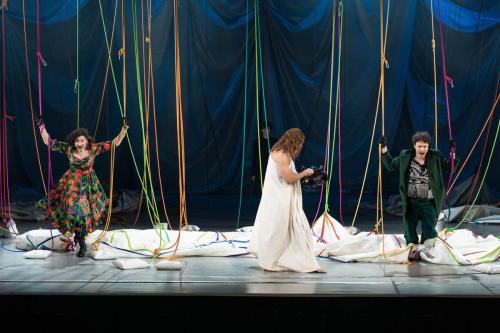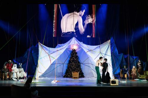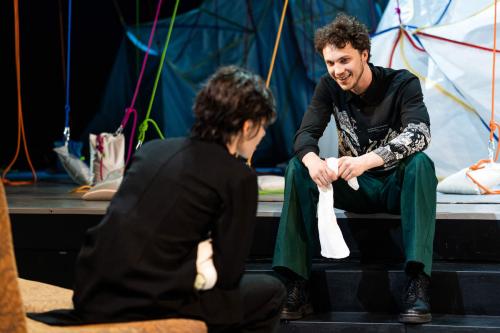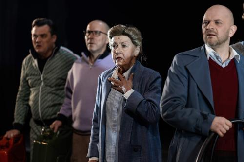 Raibajai kompānijai, kuras kustību veidu un virzību telpā pārraudzījusi horeogrāfe Jana Jacuka, pa vidu jaucas arī sapņu un iedomu tēli, tostarp vecais Brands – Juris Strenga. Plandošās drānās tērpts, viņš lēnā solī aizslīd pāri skatuvei kā vēstnesis no 1975. gada izrādes un arī no citas pasaules.