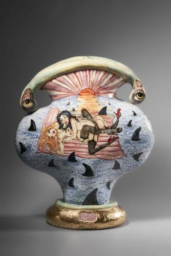 Izstāde Dekoratīvās mākslas un dizaina muzejā apvieno vairāk nekā 200 mākslas priekšmetu no muzeju un privātajām kolekcijām. Ekspozīcija iedalīta astoņās tematiskajās grupās, un tās centrālo asi veido dzīves un nāves tēmas. "Iekāres istabā" eksponētais radīts, iedvesmojoties no japāņu "Shunga" grafikas, Sigismunda Vidberga mākslas, grieķu erotiskajām vāzēm un latviešu neķītrajām tautasdziesmām, turpinot attīstīt šo mākslas nišu. Savukārt "Altāris" ir kā svētnīca, kur atstāt ziedojumus un senču gariem aizlūgt par atbalstu, bet sadaļa "Cilvēki, ko mēs pazīstam, kurus mēs gribētu pazīt, un cilvēki, kurus mēs vairs negribam zināt" ir uz apaļiem un ovāliem šķīvjiem gleznotu portretu galerija, kurā apskatāma Merilina Monro, arī Mahātma Gandijs, Latvijas sabiedrībā zināmas personas, Latvijas un ASV prezidenti u.c.