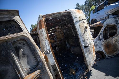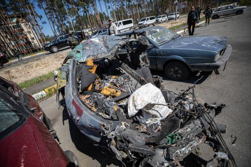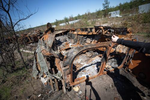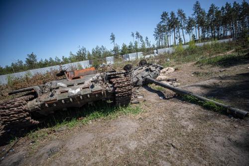 Apstājamies uz ielas, kuras malā stāv iznīcināti Krievijas tanki. Desmit iznīcināti Krievijas tanki, ja esam precīzi. Mums izstāsta stāstu, ka ukraiņi jau bija padevušies, viņiem bija palikuši divi tanki. Tomēr viņu komandieris lika neatkāpties, tādēļ tika lemts par māņu kustību, kuras rezultātā šie te divi ukraiņu tanki iznīcināja desmit krievu tankus. Pa ielas malu iet kundzīte ar iepirkumu maisiem. Viņa mums uzkliedz: "Slava Ukrainai!" – un visi korī atbild: "Varoņiem slava!"