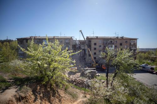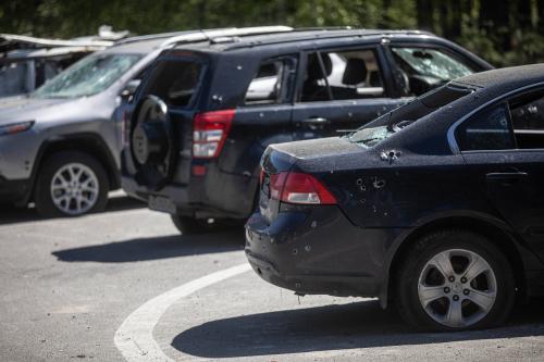 Braucam cauri ciematiem, garām parkiem, kuros agrāk spēlējās bērni un pilsētas turīgākā daļa noteikti devās atsvaidzinošos rīta skrējienos. Tagad visur ir ierakumi. Uz ielām malās betona bluķi un metāla eži – ja nu krievi nolemj atgriezties, tad ielas varēs slēgt. Visa pilsēta pamazām tiek celta no jauna, bet tai pašā laikā ir gatava, ka karš tur var arī atgriezties.